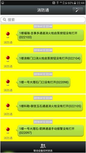 5、防火分区联动设备自动监测功能,在警报发生后,系统自动监测防火分区的联动设备并将联动设备的实时状态发送到管理人员的手机和电脑上。联动信息实时状态可以作为甄别真假火警辅助依据,在火灾发生后第一时间掌握设备运行状态并进行处理,例如下拉卷帘门没有动作的情况下手工进行处理等。